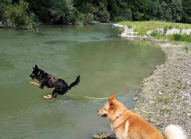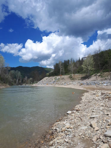 Baden in der Bormida (Fluss unten im Tal) für die Hunde.
